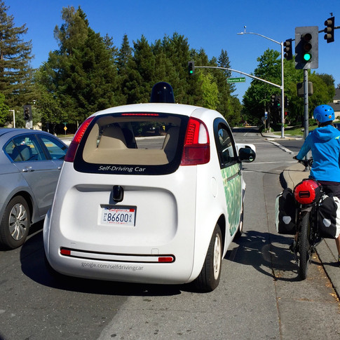 The internet giant has 20,000 employees sitting in Silicon Valley, that is almost half of its 55,000 workers worldwide. They camp in the Googleplex but smaller offices can be found all over Mountain View. As Google now also operates a testing programme with its own electric and autonomous cars, we could see those cruising around as well. They only drive 25 mph an hour and so we were able to chase one on our 20mph Haibike. Google operates a bike share as well but without motors.